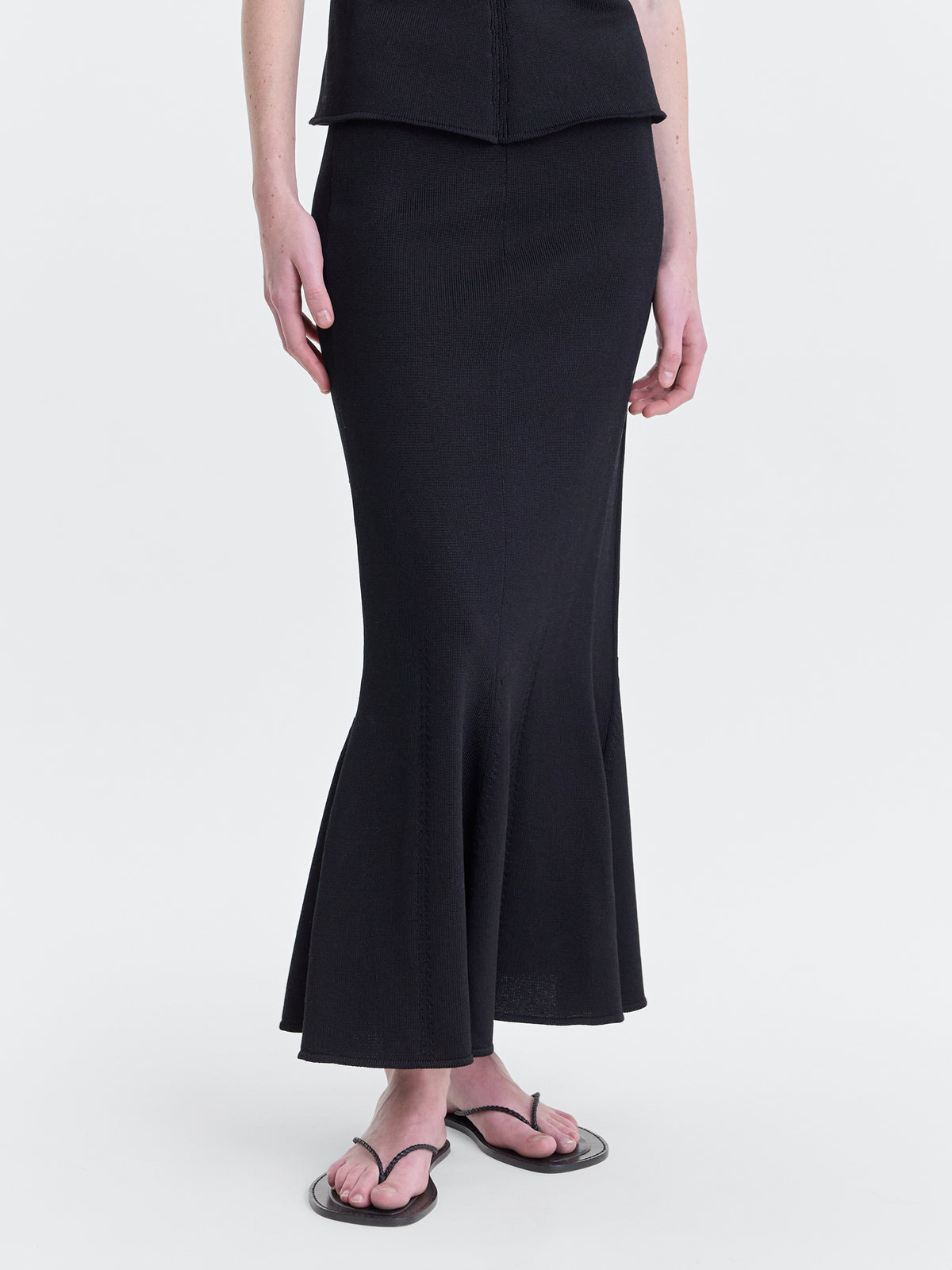 Moulded knit skirt in black compact cotton blend.