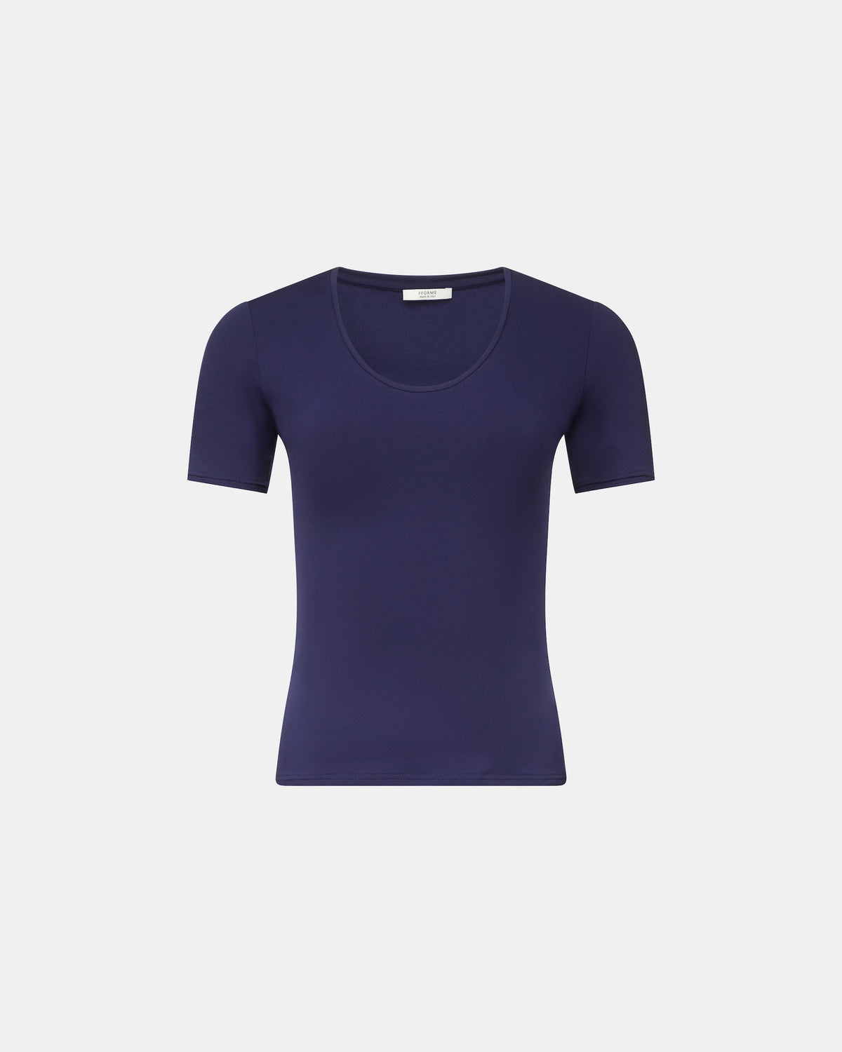 Short sleeve scoop neck t-shirt in Prussian Blue lightweight stretch jersey.