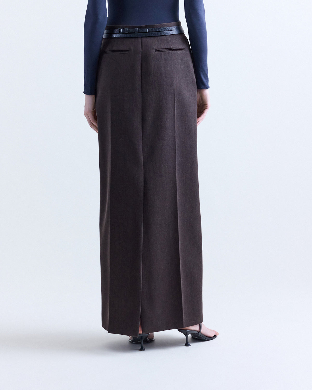 Handmade tailored maxi skirt in chestnut melange wool suiting